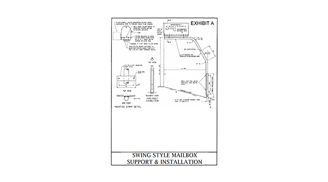 - A mailbox installation or support must meet Federal and State regulations for breakaway standards. Mailbox post must meet the design, as depicted in EXHIBIT A.