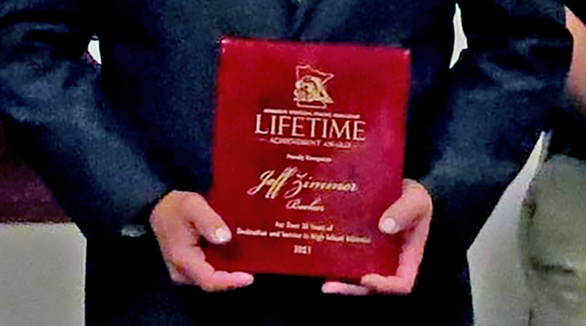 The Minnesota Wrestling Coaches Association (MWCA) recently held its 2020-21 awards ceremony, and long-time Becker High School Wrestling coach Jeff Zimmer was honored at the banquet with the prestigious Lifetime Achievement Award.